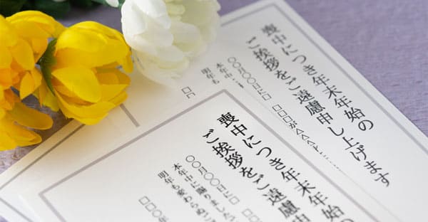 ただしコチラからの年賀状は送りません。年賀状を受け取ったら、1月8日以降に寒中御見舞いを郵送して年賀状の代わりとします。寒中御見舞いには訃報とともに、年賀状のお礼も添えましょう。