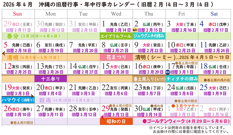 | <2026年4月:沖縄旧暦2月~3月の年中行事> | ||