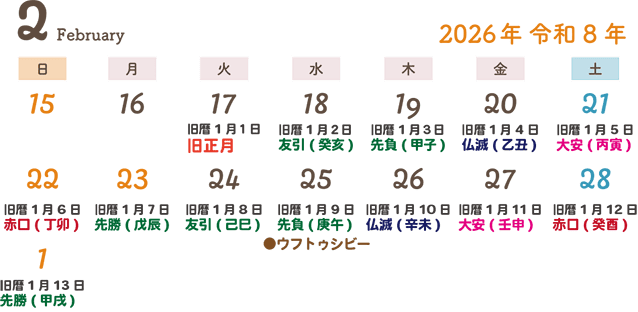 <2026年旧正月明けの干支日>