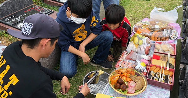 …本州から移住された方が最初に驚くのが、お墓の前に豚肉料理が並ぶ光景ではないでしょうか。