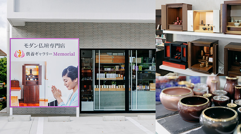供養ギャラリーMemorialでは、店内の展示コーナーで実物をご覧いただきながら、専門スタッフが一緒にお選びします。