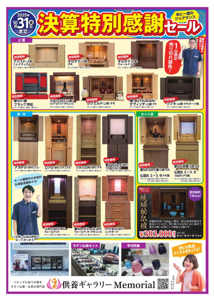 この度、供養ギャラリーMemorialでは2025年9月13日より決算セールを開催しております。